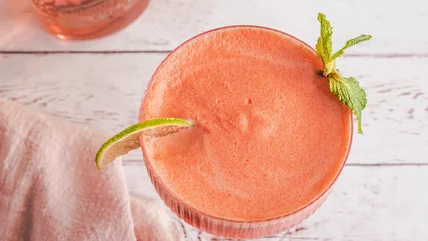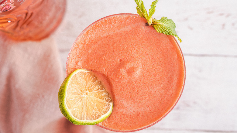Now that your creamy frozen watermelon cocktail is ready, it's time to enjoy it. Pour it into a glass, and don't forget to garnish with fresh mint leaves and a slice of lime. The garnish not only adds an aromatic touch, but also adds visual contrast to the pink, creamy concoction. Even as a beginner mixologist, you've just crafted a delightful and refreshing treat that's perfect for sipping and savoring. For another take on a frozen watermelon cocktail, try our watermelon margarita. Cheers to your newfound mixology skills, and relish every sip of your homemade creation.