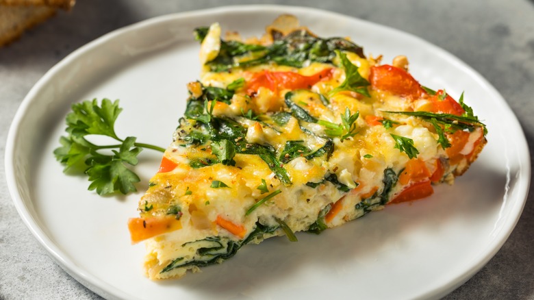 Another fun thing to cook with an air fryer is a frittata. One of Italy's countless amazing culinary creations, a frittata is a baked egg dish that's similar to an omelet and quiche. It's typically filled with a combination of meats, cheeses, or veggies and can be served for breakfast, lunch, or dinner. Like only a handful of undeniable foods, frittata's so are good that you can eat them hot, at room temperature, and even cold. When it comes to flavor, they have exactly what you're looking for. They also aren't that difficult to make, so long as you're patient and can keep a watchful eye.