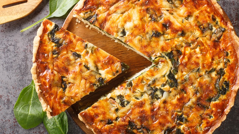 In addition to cooking crave-worthy recipes, air fryers are also great for reheating leftovers. From frittatas to hard-boiled eggs, a few minutes in the air fryer and they taste like new. It works perfectly for reheating quiches, too. Quiches are savory egg-filled pies that can be made for breakfast, lunch, or dinner. The tricky part about reheating quiches is cooking them without making the outer crust soggy. On the flip side, an air fryer can remove too much moisture from the crust if you're not careful. Compared to a microwave though, an air fryer is a much better alternative to an oven.