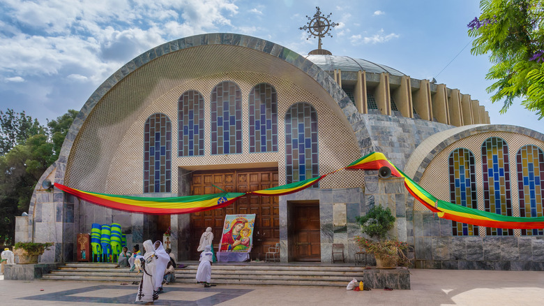 While Ethiopian cuisine celebrates meat in many forms — specifically in the meaty Ethiopian finger food, dulet — it also doesn't shy away from vegetarian options either. Given that a great deal of the population are Orthodox Christians, many Ethiopians follow the fasting days that the church directs. There are about 250 fasting days throughout the year; however, only 180 of them are mandatory. Generally speaking, most of the Orthodox Christian community in Ethiopia follows a weekly fasting schedule prescribed to them by the church, Monday, Wednesday, and Friday, along with the 55-day Lenten fast and other holidays.