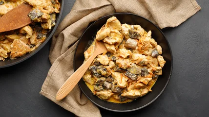 This Russian dish traditionally consists of sautéed beef smothered in a sour-cream-based gravy, then served over a bed of egg noodles or rice. However, for a quicker and easier time in the kitchen, you can simply replace the beef with chicken. This way, you won't need to slice the meat into pieces or be too mindful during the browning process. When working with chicken, you can simply sear the whole cut and take it apart as you cook. Since the meat is already relatively delicate and soft, it also doesn't take quite as long as beef to tenderize. Moreover, chicken — especially lean, boneless cuts are lower in fat and calories compared to beef.