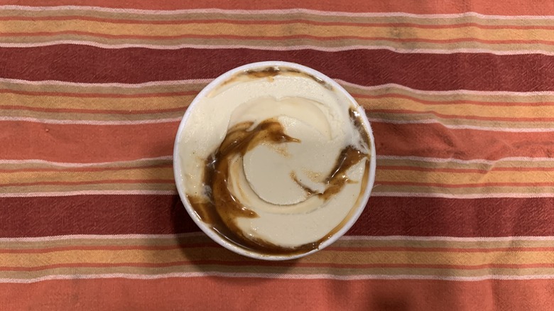 One of the culinary geniuses behind Salt & Straw (ice cream innovator Tyler Malek) draws inspiration from seasonal strolls through the farmer's market; that fresh-picked essence is on full display here in the Caramel Apple Sherbet. Many people know the joy of the first batch of autumn-kissed apples. The sherbet treatment allows for the juicy, naturally sweet flavor to shine. It's one of the most fall-forward scoops we have ever tried, and we found it divine. But in case that's not enough fall flavor, Salt & Straw adds a mahogany ribbon of sticky-sweet burnt caramel. The intriguing juxtaposition between light, bright apple sherbet and deep, dark caramel is something to behold.
