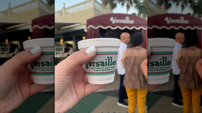 Espresso Cubano is typically served in a ceramic demitasse cup. But, at drive-thru or walk-up windows (aka "ventanitas") like the one at Versailles, a small plastic or Styrofoam cup gets the job done. Even without the ceramic, there's no doubt about Versailles Bakery's dedication to quality and heritage. Coffee is an important part of Cuban gastronomic culture.