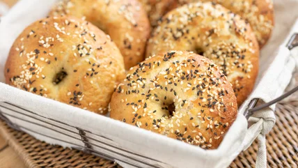 You could pair a stale everything bagel frittata with lox, dill, salty capers, and cream cheese. Use a stale salt bagel to amp up this spinach frittata recipe, or pair a stale egg bagel with leeks, radish tops, and brie. A stale sesame bagel would work well with shallots, cracked black pepper, and thinly sliced gold potatoes. You could even make a Tex-Mex version with a stale plain bagel, pepper jack cheese, diced spicy canned tomatoes (drained), jalapeno slices, and half a fresh avocado to garnish. (Sweet bagel fans, we hear you. Cinnamon raisin rocks, but it'll probably fare better in a bread pudding than it'll taste paired with eggs. It's best to stick to stale savory bagels for this tip.) Serve with a Bloody Mary, Mimosa, or cup of coffee to finish the meal.