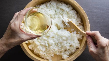 A mixture of salt, sugar, and rice vinegar adds a unique taste to rice without affecting its texture. This dynamic trio is as much a staple as rice is in Japan: Salt, sugar, and rice vinegar are the key ingredients in sushi rice. Rice vinegar has a more delicate profile than white or balsamic, with a well-balanced, sweet, and tangy palate. The sugar complements the vinegar's acidity and provides a sweet finish, while the dash of salt balances the sweet and sour combination of the seasoning and enhances the subtle nuttiness of rice.