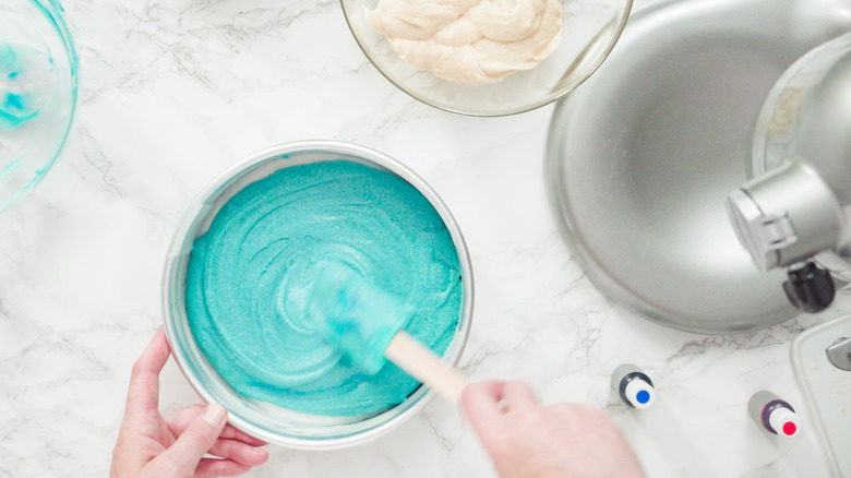 Likewise, to achieve an exceptionally rich navy hue, selecting the right type of food coloring is important. For example, liquid dyes and gels tend to produce subtle hues, which can lead to turquoise and teal-colored cakes. In contrast, highly pigmented pastes impart more vibrancy, making them a better choice when used for this type of dessert. With the help of these tips and tricks, consider the mystery of green-tinted blue velvet cake, solved.