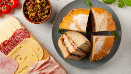 Reinvent Muffulettas With A Bruschetta Sandwich Makeover