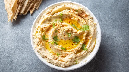 A simple, creamy hummus recipe only requires a few ingredients: chickpeas, salt, lemon juice, olive oil, and tahini. That last component is a paste made from ground sesame seeds, oil, and salt, and it brings an earthy, mildly nutty flavor to the hummus. While it's a staple in classic versions of the dip, there's no rule saying you have to include it. If you'd like to whip up a sweeter version of your favorite spread, swap out the tahini for peanut butter.