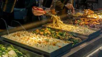 For the price, hot food offerings are a bit limited; no vegan dal or stuffed mushrooms here. Most stores are split into hot bar sections that rotate items daily or weekly: Americanized offerings like sticky sweet ribs, juicy fried chicken, and sautéed greens; pan-Asian items like egg rolls, fried rice, and sesame chicken; and a salad bar with fresh produce and pre-made concoctions. There is freshly made pizza, offered hot and by the slice, too.