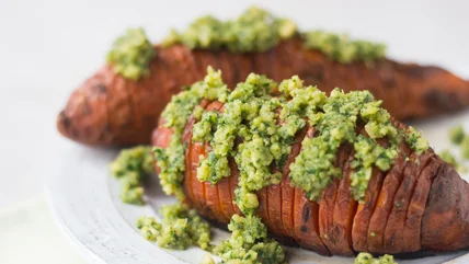 Baked potatoes' versatility is often underestimated. An epitome of simplicity, this dish requires only a few pantry staples. Yet what comes out of the oven is nothing short of magical — perfectly golden, creamy, and steaming with subtle flavors that still leave room for improvements and experimentation. One such way to elevate the classic baked potatoes and make them more exciting is with the use of pesto sauce.