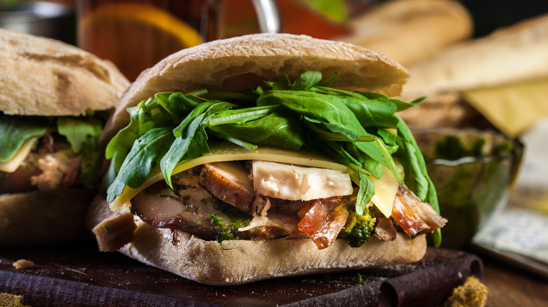 The reason vegetables complement porchetta in Italian sandwiches is because of the meat itself. Porchetta is ultra-savory and complex; it's tender, flavorful, and juicy, which means it packs a lot of punch for just one meat. The best porchetta also comes with a crispy skin, so it truly offers a little bit of everything. However, these characteristics mean porchetta is also a fatty meat, typically made from the most prized part of the pig: pork belly. As such, it's plenty powerful and calls for a few extra vegetables to truly shine. Once you pile them on, your sandwich is good to go.