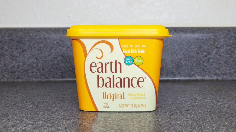 Earth Balance is one of the best butter substitutes on the market. It was one of the first brands to offer a non-dairy butter that actually tasted like butter. Since those early days, it's expanded, and today has the widest variety of options available. From soy-free to olive oil, there are many kinds to try, each packaged in color-specific tubs. But how does Earth Balance Original stack up to today's broader selection of vegan butter? You have to give it to the flavor masterminds behind it because it's still a pretty good substitute.