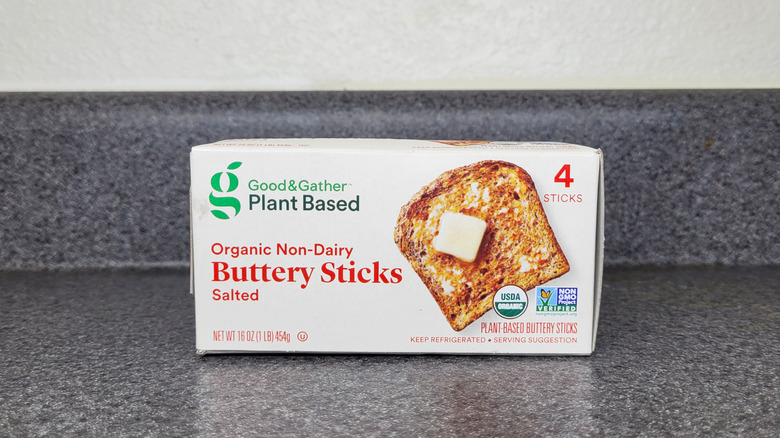 One of the most surprisingly delicious vegan butter options comes from Target. Of all places, Target is one of the last places you'd expect to churn out a worthy dairy-free butter. As one of the largest retailers in the U.S., offering quality-tasting vegan butter says a lot about Target's dedication to recreating the real thing. In fact, this might be the closest to dairy butter taste and consistency.