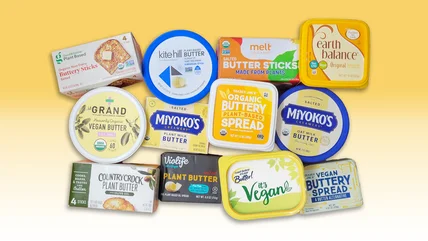 Another contender worth betting on is Kite Hill Plant-Based Butter. Much like Miyoko's Creamery, it closely captures the taste of the real thing. Creamy and rich, it's great for cooking and using as a spread. That said, there are some areas where Kite Hill could improve. It's slightly salty and has a cheese-like note that's oddly reminiscent of Kraft singles. That could be a good thing or not depending on what you like. The flavors stand out when eaten alone, but will blend nicely in your cooking. Try using it to make savory vegan mashed potatoes.