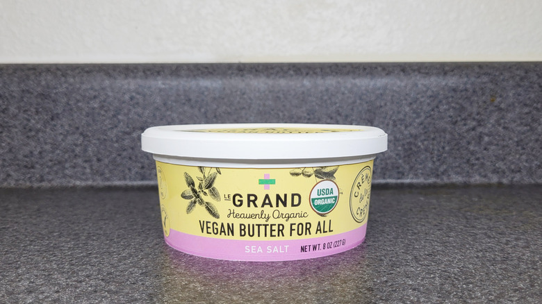 This next one has a unique consistency that may only be suited to acquired tastes. Made with coconut oil, sunflower oil, and unexpected ingredients like potatoes and carrots, Le Grand Vegan Butter is for those ready to truly earn their vegan badge. Its consistency is off-putting initially — it's closer to a paste than a spread. At first, you're unsure whether you like it or not, but as it begins to settle on your palate, all the flavors fall into place. Don't expect your typical butter experience, but do expect to be surprised.