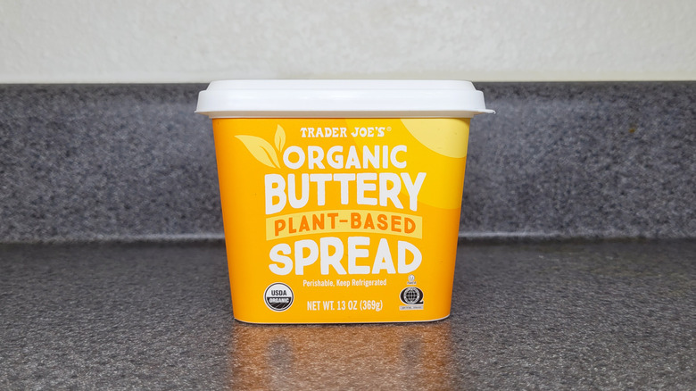 Major grocery store chains have never been known for their in-house brands. Trader Joe's happens to be an exception. It's a great place to find a diverse selection of in-house food products, and there's a constant rotation of new ones that keep things fresh, as well. Some hit it out of the ballpark, while others strike out. Trader Joe's has two vegan butter options: Trader Joe's Vegan Butter Spread and Organic Buttery Plant-Based Spread. Unfortunately, the first option flew right past the swinging bat.