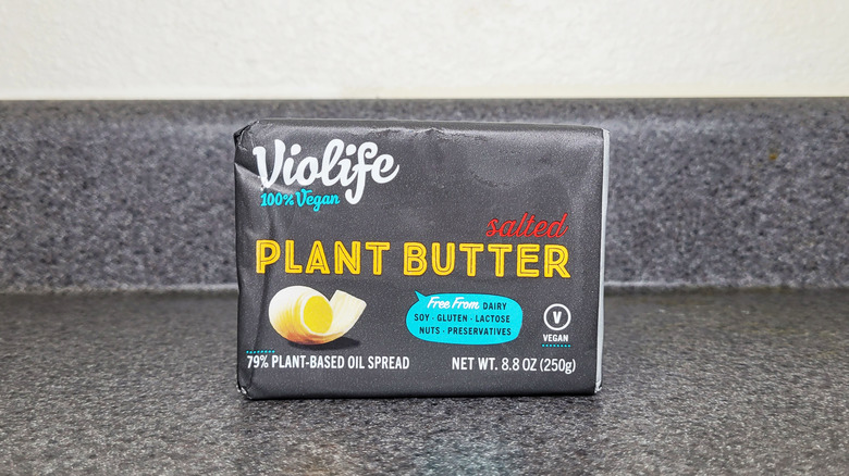 Disappointing taste aside, the ingredients are decent. Violife Plant Butter is made with an oil blend of coconut, sunflower, and canola. Faba bean, a common protein used in vegan products, is also included. Sadly, decent ingredients aren't enough to compensate for the state of confusion your tastebuds will be left in. Violife 100% Vegan is one of the most recognizable and affordable vegan brands at major grocery stores. It's known for good products but somehow missed the mark here. The brand really needs to go back to the drawing board with this one and rework the recipe.