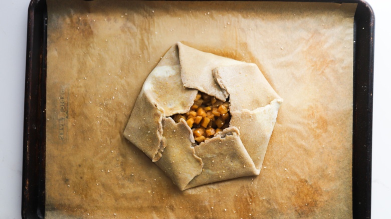 There's no denying that a warm apple pie is a quintessentially fall dessert. The soft apples, warm spices, and flaky pie crust make for an irresistibly delectable treat. The only problem is that double-layered fruit pies can be notoriously tricky to pull off. Enter, the crostata. A crostata is an Italian baked dessert tart. Traditionally, it's made by preparing a type of shortcrust pastry dough, which is then filled with various fillings, most commonly fruit preserves, fresh fruit, or pastry cream.