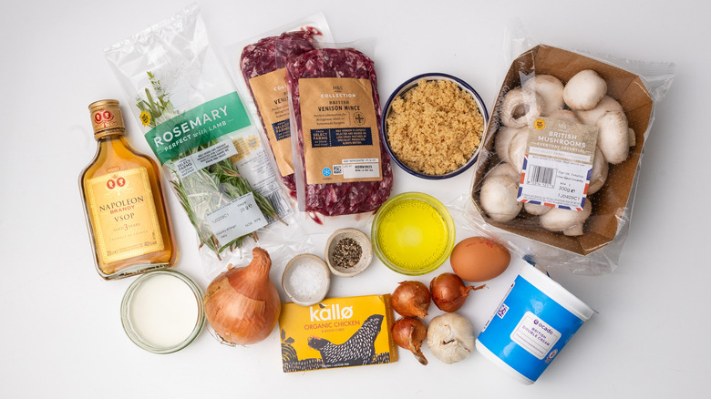 Gather the ingredients for this venison meatballs and brandied mushroom gravy recipe