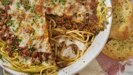 When building your pasta pie, don't get too deep, literally. The thicker your pasta filling, the longer it will take to heat through and possibly become overcooked. The last thing you want is a mushy pasta pie. Finally, consider topping it off with a bit more cheese and broiling the pie for a bubbly, browned crown.