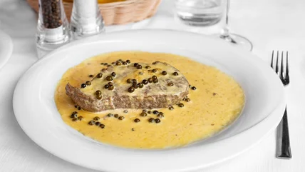 Fond forms the basis of a number of pan sauces. The pan is deglazed with liquid, and can quickly turn into a sauce or gravy. Peppercorn sauce, which draws inspiration from the classic French dish steak au poivre, is one example of a pan sauce. In addition to fond, the sauce is traditionally made of cream, brandy, beef stock, shallots, and, of course, peppercorns. Green peppercorns are usually the star of this sauce, though some recipes use black peppercorns instead. So how do you make peppercorn sauce without fond? It's not as hard as it may seem. All you need is some butter.