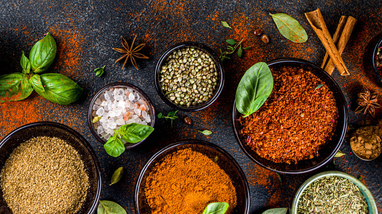 Since there are so many seasonings out there, you may never run out of fun, exciting options to elevate oyster crackers. For a taste of familiarity, ranch seasoning is a top-notch choice. You can buy pre-made ranch seasoning or make your own from a combination of salt, pepper, onion powder, garlic powder, buttermilk powder, and various dried herbs. Tangy and herby with a savory hint peeking through, ranch seasoning makes oyster crackers the perfect snack for game nights and house parties. If you're in the mood for something more intense, give your oyster crackers a spicy makeover. Drizzle melted butter or oil onto the crackers, then sprinkle robust spices like cayenne pepper, chili powder, crushed red pepper, cumin, and paprika on top. Give them 10 to 20 minutes in the oven, and you've got a fiery bowl of oyster crackers ready to ignite the taste buds.