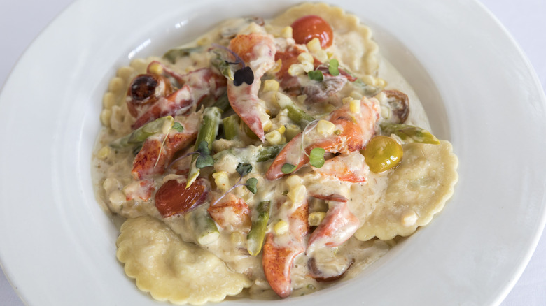 The potential fillings for homemade ravioli don't need to be limited to simply spinach or mushrooms and cheese. The options are endless, but one arguably stands above the rest. Adding lobster to ravioli will always transform the dish. Lobster ravioli is extravagance in a bite — the decadent lobster meets rich ricotta, creating a luscious meal that never gets old.