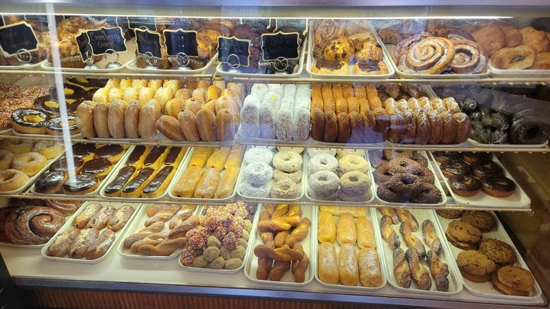 Unlike trendy locations that play around with all manner of wacky toppings, Demet's prefers to keep things simple by serving only classics like cinnamon-sugar, powdered, and jelly-filled. You can't go wrong with any of these flavors, but where Demet's really shines is with its blueberry cake and Boston cream donuts. Both are simply bursting with fresh, gooey filling. Given Demet's reputation, we recommend getting there early (it opens at 5 a.m.). Fair warning — the spot can and will sell out by noon. It's also worth noting that the shop only accepts cash. Along with donuts, Demet's sells bagels, coffee rolls, and breakfast sandwiches.