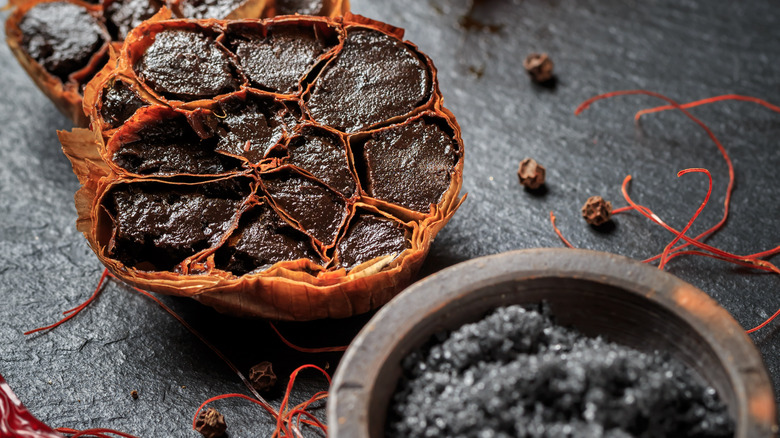 Nothing hits the spot like a good Bloody Mary. The cocktail's refreshing spice and deep, savory flavor make it an excellent companion to any meal, especially brunch. It is also known for its versatility, as the tradition of creative and often over-the-top garnishes allows for extensive customization. While outlandish toppings can be a fun and filling way to mix up your Bloody Mary, using new seasonings can be an even more sophisticated way to up your cocktail game. One seasoning we recommend in particular is black garlic salt, which brings an extra punch of savory goodness to your drink.