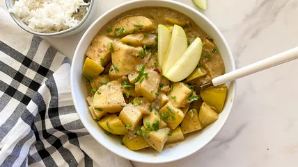 Wellness coach and recipe developer Miriam Hahn brings us this recipe and says, "I am a huge curry fan and have made hundreds of variations. The use of apples in this recipe gives it a tart yet sweet flavor and paired with creamy coconut milk gives you a creamy and silky curry." You can serve this green apple curry with steamed rice, roti, egg hoppers, or just enjoy it as-is.