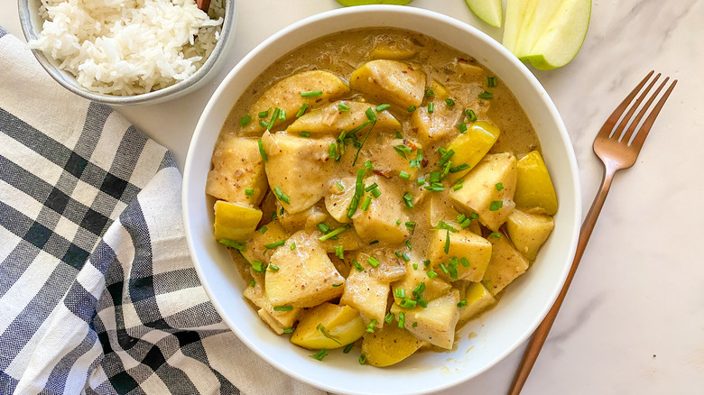 This Sri Lankan-inspired green apple curry features a coconut milk base and spices such as coriander, cloves, and cardamom.