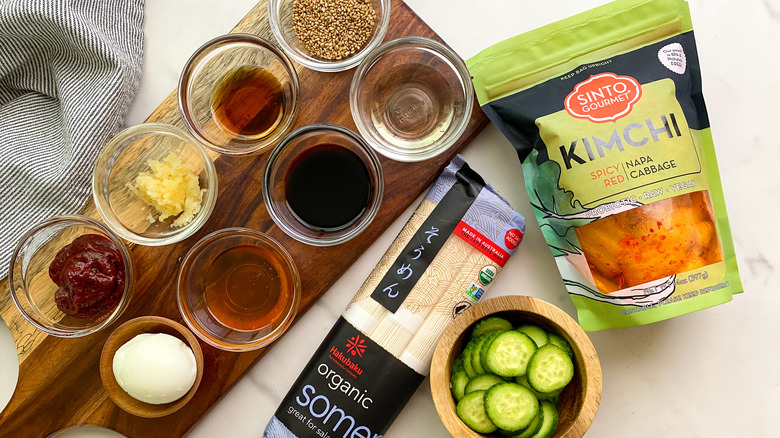 Gather the ingredients for bibim guksu