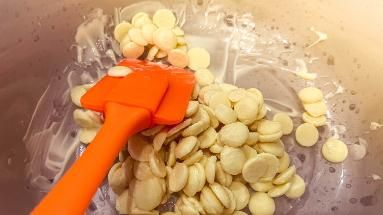 According to The Spruce Eats, this browning can be accomplished in the oven by laying the white chocolate chunks on a baking sheet and cooking them at a low temperature for an extended period of time, stirring the melted mixture occasionally. You can also make blond chocolate on the stovetop, though this method works much more quickly and is much less forgiving.