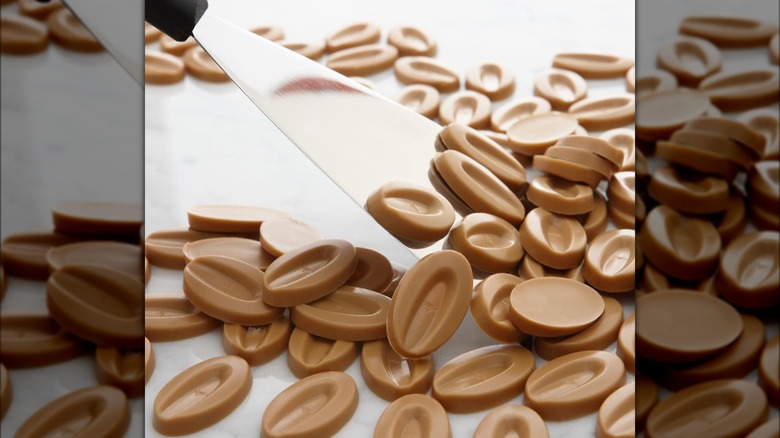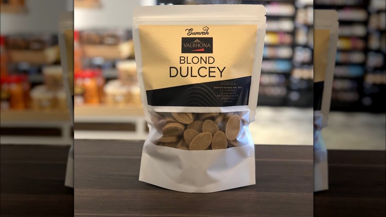 While blond chocolate is gaining traction in the confectionary world, it might still be difficult to find it locally. Although it remains much less prominent than more classic varieties, some brands have been making strides toward increasing the prevalence of blond chocolate in the candy aisle. For example, in 2017 Hershey's launched a golden creme chocolate bar called Hershey's Gold. Additionally, Cadbury's Caramilk line features blond chocolate as a bar and also small poppable chocolate buttons. You may even find some store brands, such as Kroger's Private Selection Blonde Chocolate Bar getting in on the action. However, a trip to the average American grocery store unfortunately reveals that this chocolate trend has a long way to go before becoming a mainstream staple.