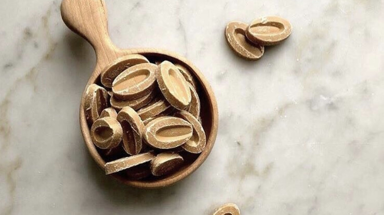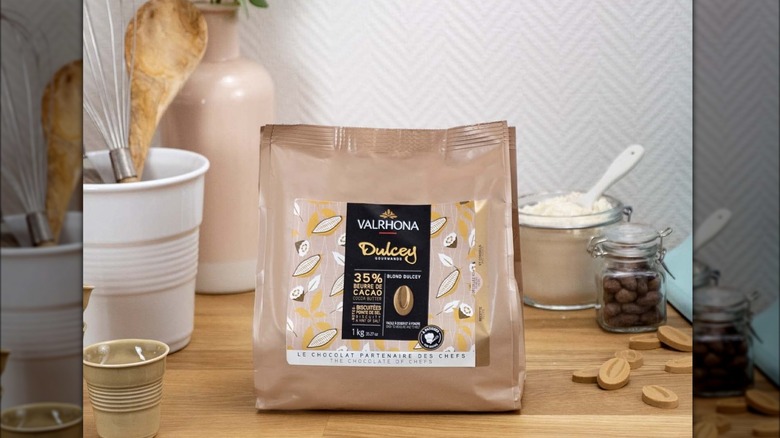 According to Hotel Chocolat, blond chocolate came about in 2004 as a sort of delicious mistake. A French pastry chef at a chocolatier, Valrhona, accidentally left his white chocolate unattended in a hot water bath for hours, and when he came back to discover his error, he noticed that not only had the chocolate changed color, but it had also developed a special flavor. Replicating this unique chocolate form, this time on purpose, led to a viral chocolate sensation that's been prepared by many home cooks for their own amateur creations and even sold commercially by brands like Hershey's and of course the confection's originator, Valrhona.