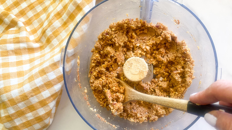 Pulse the mixture to break down the beans but keep the mixture chunky. "Resist the temptation to turn on the food processor and let it run. When you over blend the mixture, you lose the chunky texture we need for these meatballs," Hahn shares.