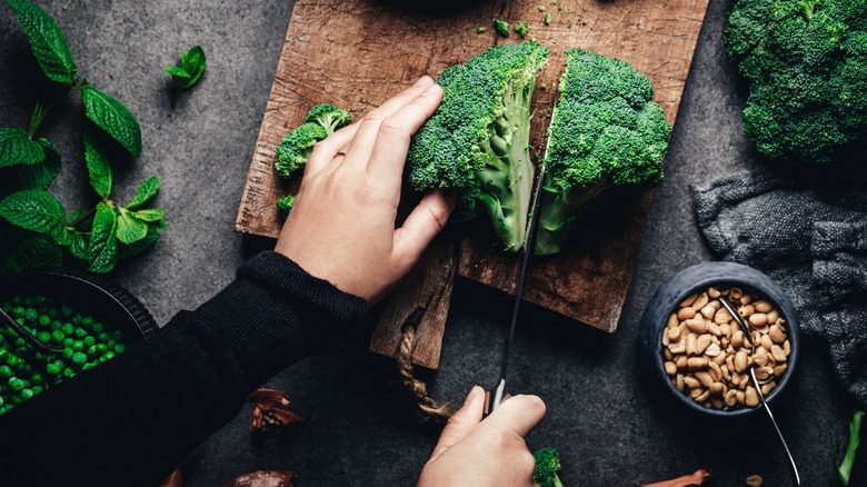 When it comes to roasting vegetables, olive oil is Ina Garten's weapon of choice. After drizzling over the veggies and adding seasoning, Garten suggests tossing everything with the hands. Using your hands will allow for better control over the tossing process and ensure the oil is coated more precisely, preventing you from over-oiling some pieces while under-oiling others. When this happens, the veggies may cook unevenly and some will be soft while others will turn mushy.