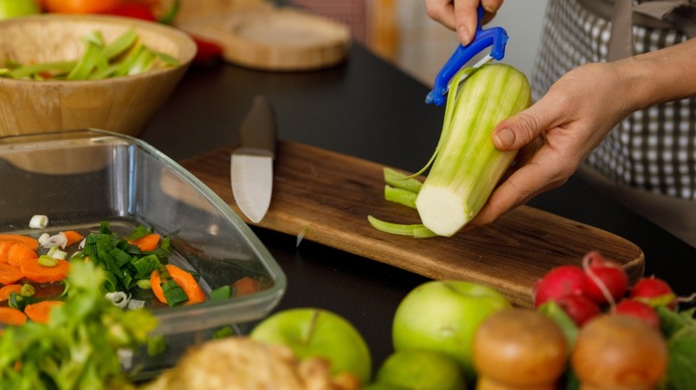 For the most part, Garten suggests peeling root vegetables before roasting, as in her roasted winter vegetable recipe. She leaves carrots unpeeled in certain recipes (like these orange-roasted rainbow carrots) and if that's the case, it's necessary to vigorously scrub the outside with a vegetable brush to ensure all the dirt is removed. Most importantly, make sure you're using a sharp vegetable peeler. Garten suggests replacing the tool once a year. "Vegetable peelers get rusty, they get dull," she explained to Food & Wine in 2020. "They're very cheap, so you can just throw them out and buy new ones."