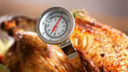 The outside of a cut of beef or chicken may look safe to eat after some browning occurs in the air fryer, but just as with food cooked in the oven or on the stove, the only way to be sure is to check with a food thermometer. When cooking food like meat, poultry, and seafood, it is vital that everything reaches a proper internal temperature to eradicate any harmful bacteria that may cause you to contract a foodborne illness. Raw meat may contain Salmonella or E. coli bacteria, which can lead to food poisoning and painful symptoms like nausea, fevers, or worse.