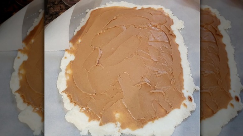 Once you've made and cooled your mashed potatoes, slowly beat in the vanilla extract and powdered sugar. At this point, some recipes call for the addition of a little milk or butter, which you can do for added creaminess. When you have a dough-like consistency, roll it out on a powdered sugar-dusted surface, sprinkle some more powdered sugar on top, and spread your peanut butter on the potato mixture. You may want to warm up your filling first so that it goes on easily and doesn't stick to the dough. Then all that's left is to roll everything into a log, refrigerate the result, and slice it into pinwheels. The mashed potato-peanut butter combo may be unconventional, but you'll understand the appeal as soon as you sink your teeth into your first bite.