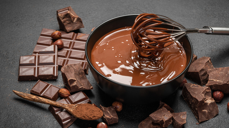 Anyone who's baked with chocolate at home knows that trying to get smooth melted chocolate is an entire ordeal. Sure, grating and chopping the chocolate beforehand helps, but depending on the kind of chocolate you're using, it might still be an uphill battle to get that silky, lump-free consistency you're looking for. Fortunately, there's one easy shortcut where you won't have to worry about unevenly melted sections or having to fix seized chocolate: Buy yourself a few chunks of paramount crystals and melt them in.
