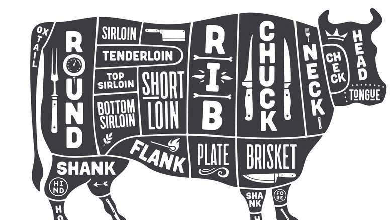 Not to be confused with tenderloin, sirloin, or bottom sirloin, top sirloin is its own unique cut. It comes from the part of the cow known as the sirloin primal, which is made up of the cow's butt and ribs. This area is also where many of these aforementioned cuts come from as well. Since a couple of different muscles make up the meat, Jered Standing says this cut "provides several different unique textures and flavors." This is due in large part to where it's located.