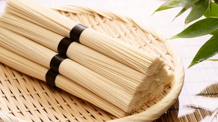As an ingredient, sōmen noodles are primarily used to provide texture. Sōmen noodles are more commonly compared by mouthfeel than flavor. There are regions that make their sōmen noodles as small as 0.3 millimeters wide, and the thin, almost gelatinous sensation sōmen noodles provide is what people associate with them. Because sōmen noodles are so small, it would be unusual to eat just one at a time. So, when you grab a mouthful, these very thin noodles become a highly sensory experience as they shoot off in different directions.