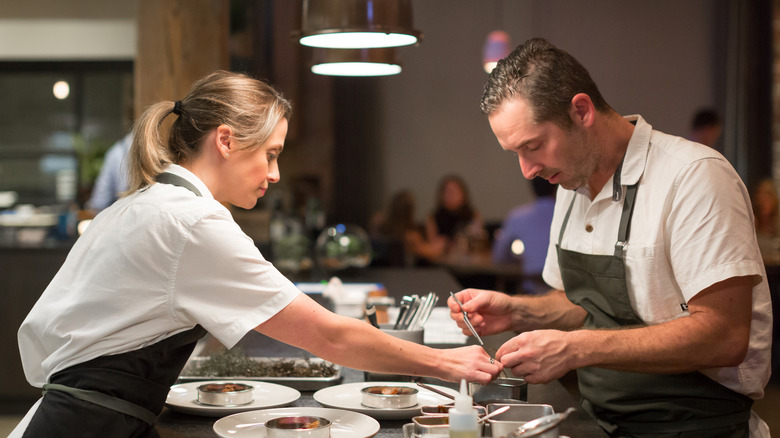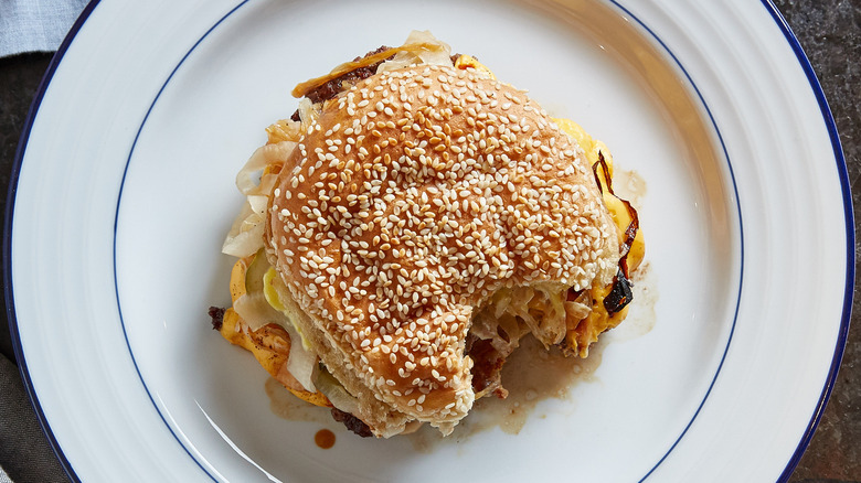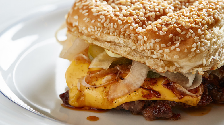 The flavor profile of beef and onions took the lead on the rest of the recipe. "I love the idea of beef and onions together," Shields says, citing a love for dishes like beef au jus with melted onions. "I love that flavor the most, so I started messing around with onions and focus[ed] on that." Along with pickles and American cheese, the onions — in a lot of ways — are the star of the burger. "I kept messing around with onions and came up with a mayonnaise of onions," explains the chef. "An onion aioli, so to speak. That's where a lot of our flavor comes from."