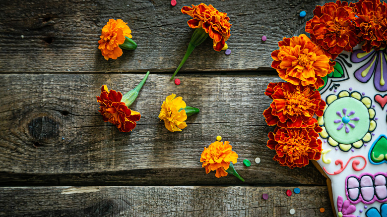 Decorate Tortillas With Symbolic Marigolds For Día De Los Muertos