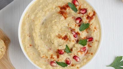 These mini red gems are bright and pretty, making them the perfect hummus topping for a festive occasion — but even if it's not the holiday season, they can turn your appetizer from dull to dazzling. They also add an element of freshness to an otherwise rich spread, and their sweet, zingy taste provides the perfect flavor contrast to an otherwise salty dip. Plus, when you go to taste your zhuzhed-up appetizer, the smooth texture of your hummus will be balanced out with a little added crunch from the fruity seeds as they pop in your mouth.