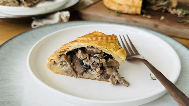 Introducing the show-stopper mushroom Pithivier, a modern twist to a French classic — definitely an adventurous hors d'oeuvres. If you haven't heard of it before, the Pithivier hails from a quaint French town of the same name.