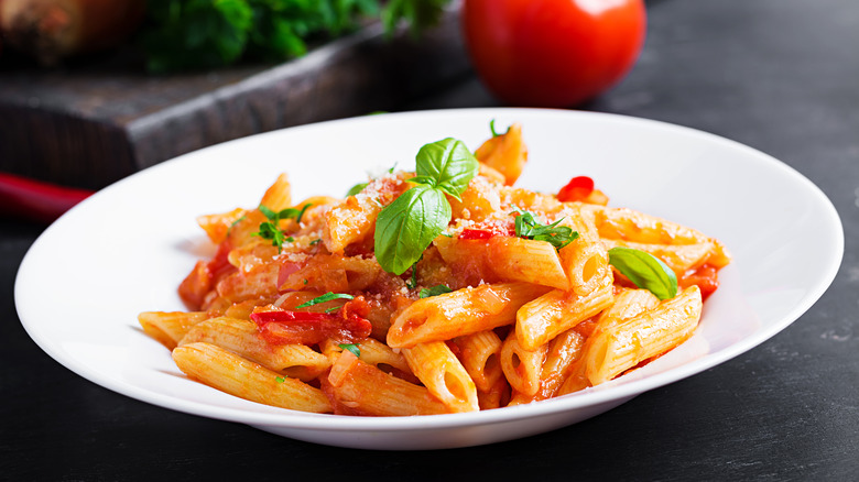 Chunky tomato sauce pairs well with all kinds of classic pasta dishes, but it works best in simple recipes with few other ingredients where the sauce itself is the star of the show. Opt for tube-shaped pasta like penne or rigatoni that will capture chunky sauce better, as less smooth sauces are prone to sliding off spaghetti or linguine. Pasta sauce doesn't need to be fancy, complex, or time-consuming. As Flay shows us, sometimes the simplest way to make something is also the best, even for a famous chef.