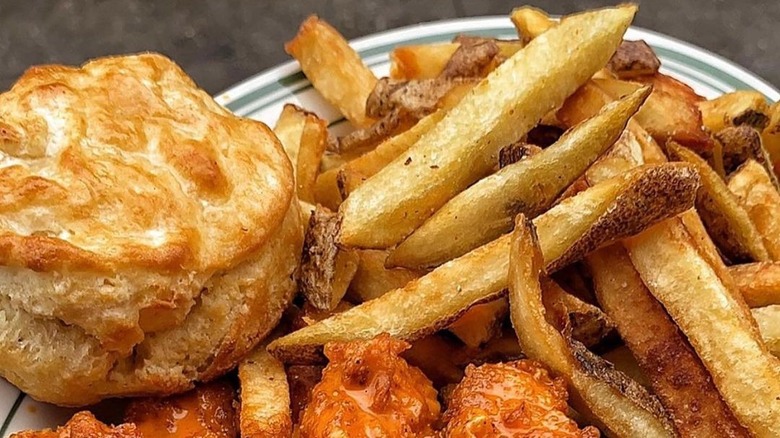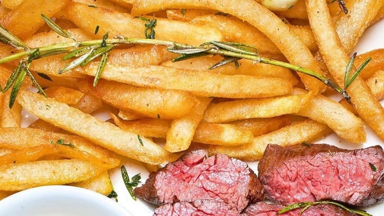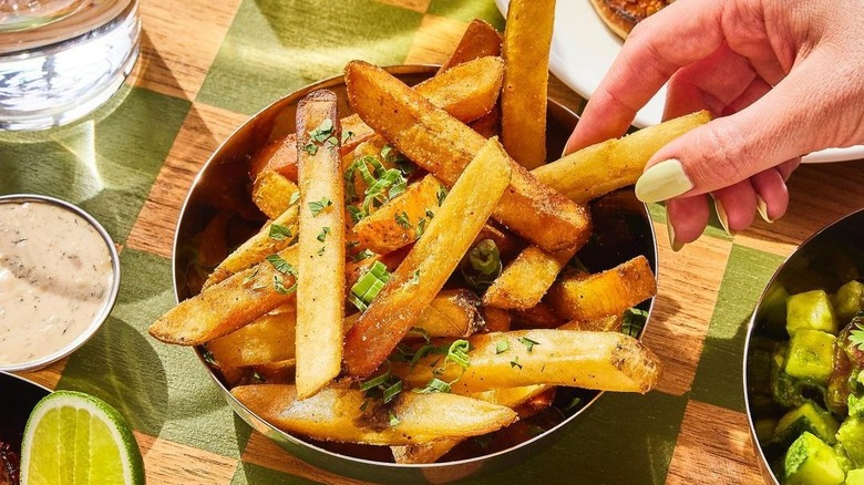 At Laser Wolf, in Brooklyn, the fries are anything but an afterthought. In fact, the kitchen has to start preparing them a full three days before they're planning on serving them. Once they're ready, they're served with a tahina ketchup. At $14 (at the time of publication) these aren't exactly cheap, but you get to enjoy them in a lushly decorated environment with a beautiful view of Manhattan. If you're here for snacks, pair your fries with any of the top-notch appetizers, especially the Moroccan carrots or the cucumbers with harissa. If you're serious about eating, order your fries to munch on with a steak or chicken shishlik.