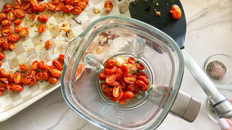 Add the tomatoes to a baking sheet and bake for 30 minutes.